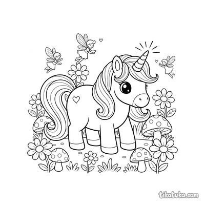 Poni Unicornio Pastando en Bosque Encantado