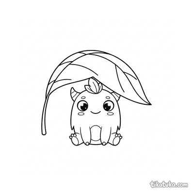 Монстр з пір'яним чубом під великим листком