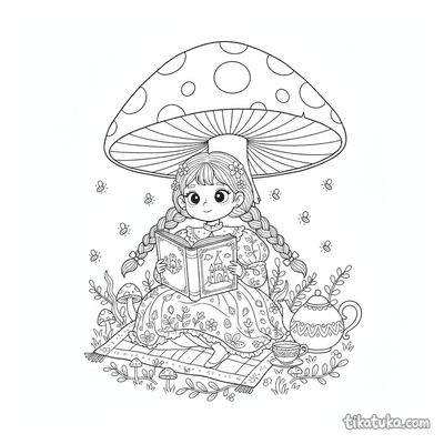 También hay escenas con hongos bioluminiscentes y personajes que atrapan su luz en tarros. Todas las ilustraciones están en blanco y negro, con líneas claras perfectas para colorear. Puedes descargar e imprimir 32 diseños gratis, ideales para una tarde de creatividad o para imprimir varios y hacer un mural temático.
