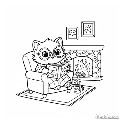Gatito Leyendo junto a la Chimenea