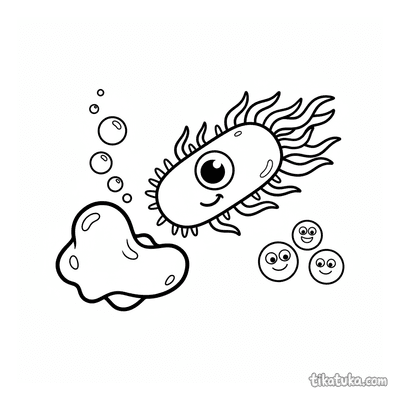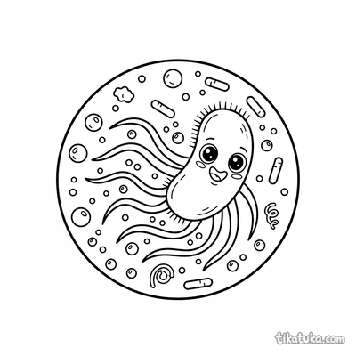 Esta colección presenta dibujos de flagelos para colorear. Los flagelos son estructuras celulares que permiten el movimiento, y aquí se muestran en bacterias con diseños amigables.