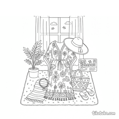 Esta colección presenta dibujos para colorear en disposición plana. Las imágenes muestran objetos y conjuntos dispuestos sobre una superficie, ofreciendo una vista clara y detallada. Esta perspectiva es ideal para centrarse en los detalles y la composición de cada escena.