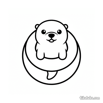 Cachorro de Nutria Sonriente en un Aro en la Piscina