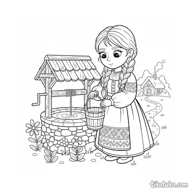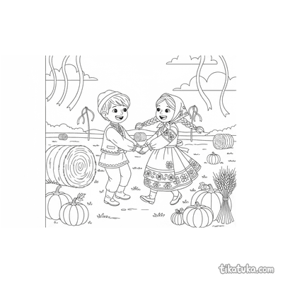 Esta colección presenta dibujos para colorear de trajes folclóricos en diversas escenas de la vida tradicional. Los diseños muestran detalles característicos como bordados, delantales y sarafanes. Cada página captura momentos de festividad y costumbres populares.