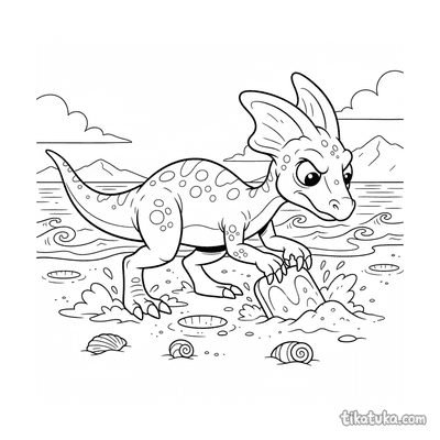 Dilophosaurus Cavando por Almejas en la Playa
