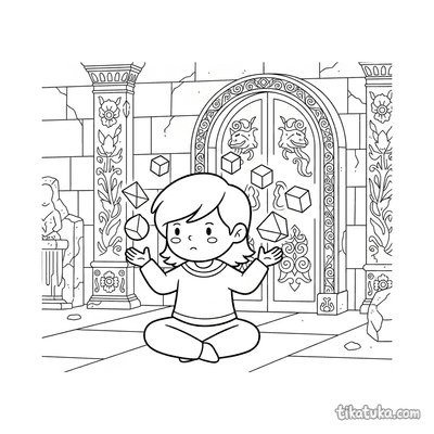 Héroe psíquico resolviendo rompecabezas con formas flotantes