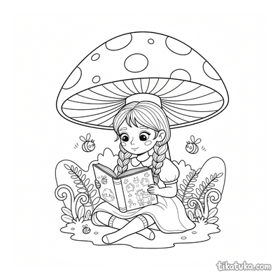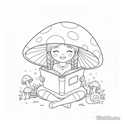En estas páginas, la niña se convierte en astronauta explorando planetas, en lectora bajo techos de champiñón, o en jardinera cuidando setas brillantes. También la verás saltando en charcos con su impermeable, pintando arcoíris o observando las estrellas con un telescopio. Todas las ilustraciones están en blanco y negro con líneas claras, perfectas para colorear. Puedes descargar las que más te gusten para imprimir en casa o, si lo prefieres, colorearlas directamente en la pantalla.