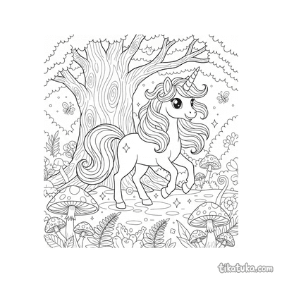 Poni unicornio mágico pastando en un claro encantado