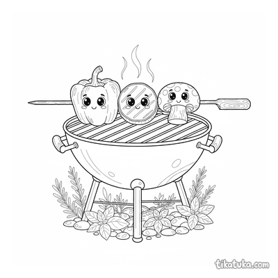 Esta colección de páginas para colorear presenta una variedad de escenas relacionadas con la parrilla. Los dibujos capturan la diversión y la comida de las barbacoas y asados. Cada ilustración está diseñada en blanco y negro para que los niños puedan darles color.