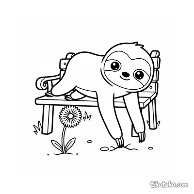 Bebé perezoso colgando en banco del parque