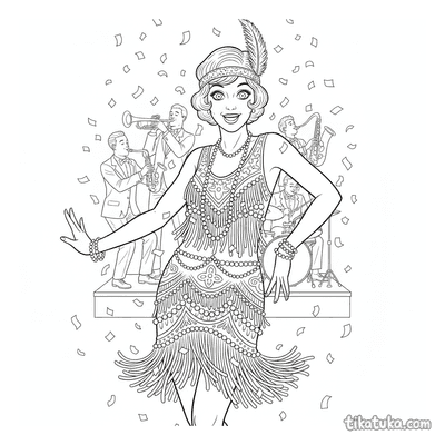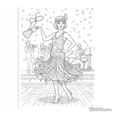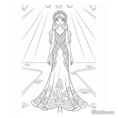Encontrarás vestidos de feria renacentista, elegantes trajes flapper de los años 20 y vestidos de baile rococó con volantes. También hay diseños inspirados en el Art Nouveau y vestidos de gala vintage en escenas de pasarela. Todos los dibujos están en blanco y negro con líneas claras, ideales para imprimir en casa o colorear directamente en la pantalla. Puedes descargar las páginas de una en una o todas juntas para tener un completo álbum de moda histórica para colorear.