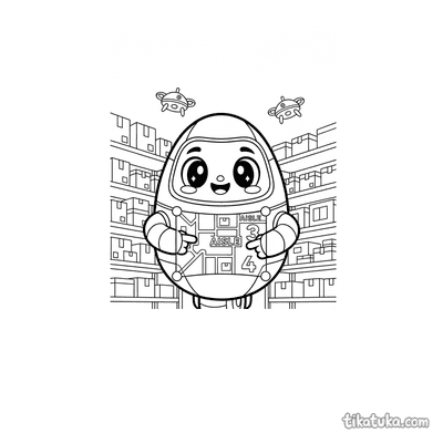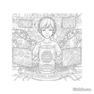 También hay robots con mapas holográficos, profesores alienígenas enseñando con alfabetos luminosos y héroes inventores en sus laboratorios. Todas las ilustraciones están en blanco y negro con líneas claras, listas para descargar e imprimir en casa. Puedes colorear online o imprimir varias copias para crear tu propio álbum de aventuras tecnológicas.