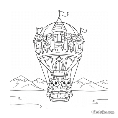 También hay diseños creativos, como globos con forma de corazón o de castillo, e incluso escenas donde personajes como una princesa steampunk, un conejón o un monstruo peludo disfrutan de un paseo en globo. Puedes descargar e imprimir gratis todos estos dibujos en blanco y negro, con líneas claras perfectas para colorear. Es ideal para imprimir varios a la vez y tener una sesión de creatividad temática sobre vuelos y aventuras en globo.