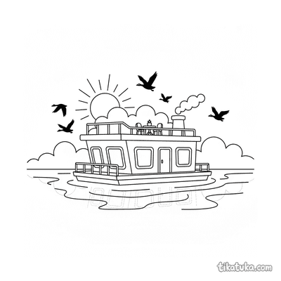Casa Flotante de Vector Plano en un Lago al Atardecer