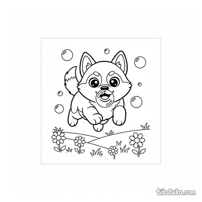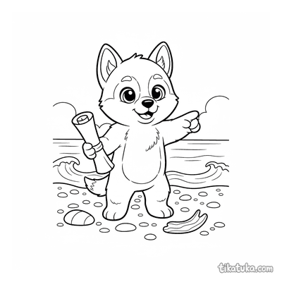 También hay escenas del Husky Lutik durmiendo en un prado, leyendo bajo un árbol o explorando la playa. Todas las ilustraciones tienen líneas claras y son fáciles de imprimir en casa. Puedes descargar las que más te gusten para colorearlas con lápices o pinturas, o incluso usar la herramienta online si prefieres.