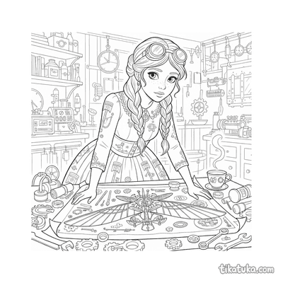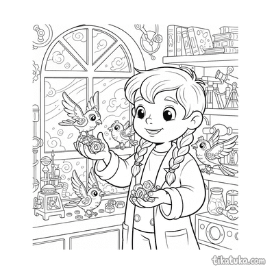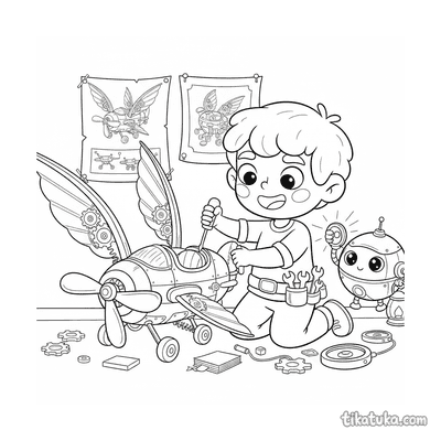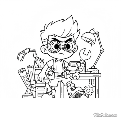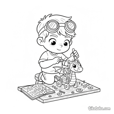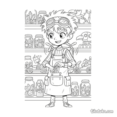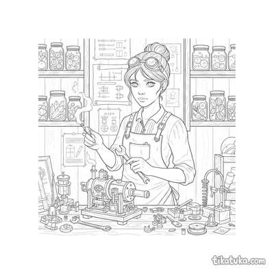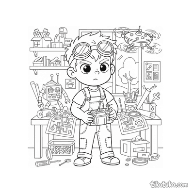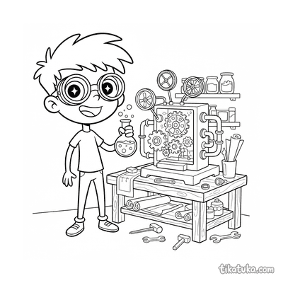 Esta colección reúne dibujos para colorear de inventores y sus creaciones. Las páginas muestran a estos personajes en su taller, trabajando en sus ideas y experimentando con sus inventos.