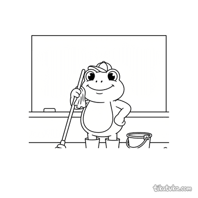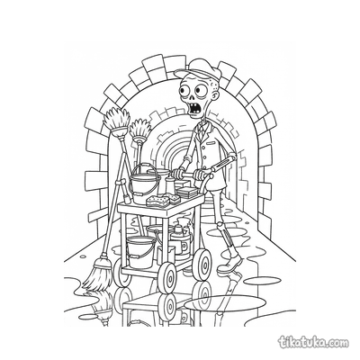 Esta colección de dibujos para colorear presenta a conserjes en sus tareas diarias. Los personajes, desde animales hasta robots y zombis, muestran escenas de limpieza y mantenimiento.