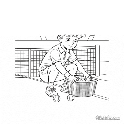 Recogepelotas Reuniendo Pelotas en la Cesta
