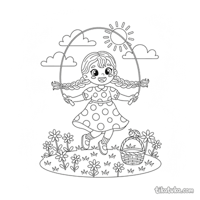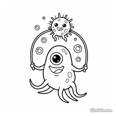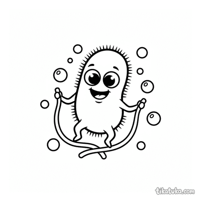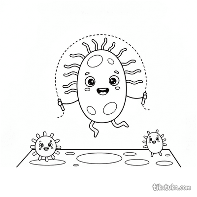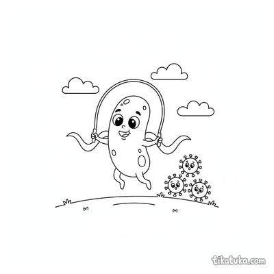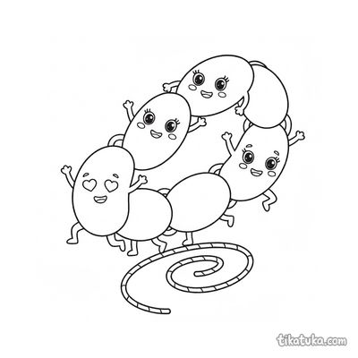 En estas páginas, la cuerda de saltar aparece en manos de niñas con trenzas, bacterias con flagelos, amigos mochi e incluso un aprendiz de ninja en un curso de bambú. También hay monstruos largos que usan una cuerda de regaliz, ofreciendo escenas llenas de movimiento y diversión para pintar. Puedes descargar todas estas ilustraciones en blanco y negro con trazos claros, ideales para imprimir en casa. Es fácil obtener varias copias de una vez si quieres colorear la misma escena con amigos o en clase.