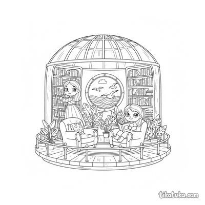 Esta colección reúne dibujos para colorear que tienen como escenario principal una biblioteca. Las ilustraciones presentan distintos personajes y situaciones relacionadas con el mundo de los libros y la lectura.