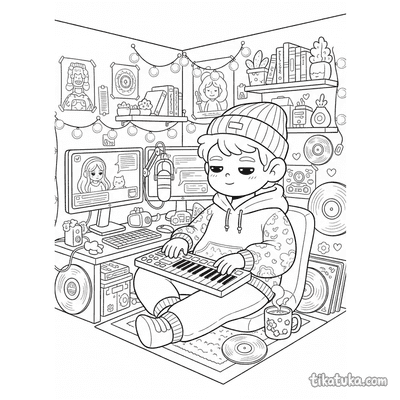 Páginas para colorear con la etiqueta "lo-fi" para niños. Descarga e imprime gratis.