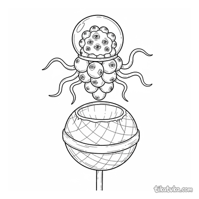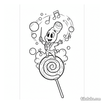 En estas páginas, las piruletas aparecen en manos de monstruos peludos, sirven como vehículo para un hombre de jengibre o son el escenario para microbios bailarines y astronautas. También encontrarás piruletas en conciertos microscópicos y como postres para chefs de helado, ofreciendo muchas situaciones diferentes para colorear.