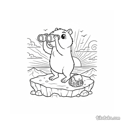 Capibara con prismáticos en un mirador al atardecer
