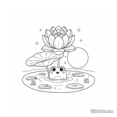 Esta colección reúne dibujos de loto en diferentes escenarios. La flor de loto aparece en estanques tranquilos, bajo la luz de la luna o como soporte para animales meditando.