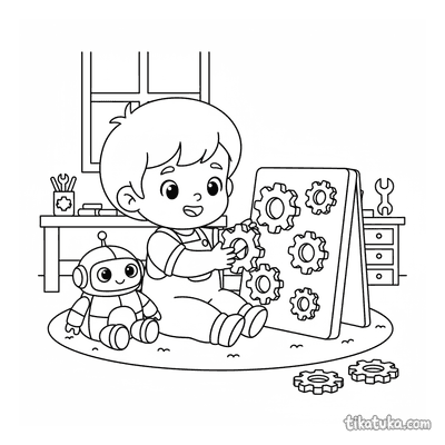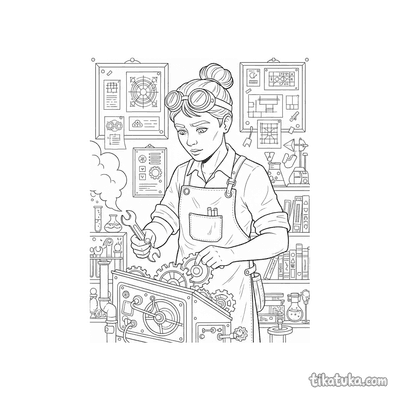 Esta colección de dibujos para colorear presenta un mundo de piezas de máquina y mecanismos. Las ilustraciones combinan elementos de relojería, engranajes y tecnología steampunk en escenas imaginativas.