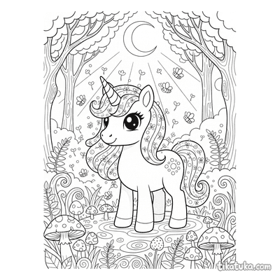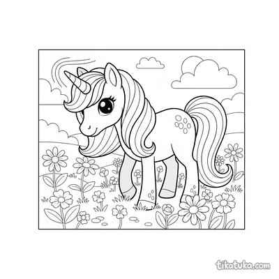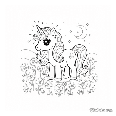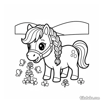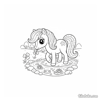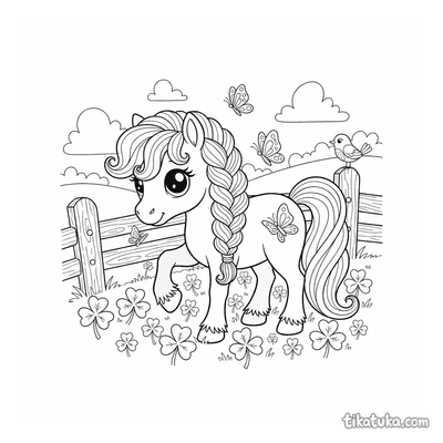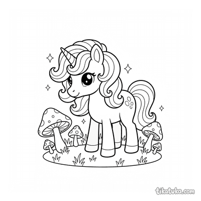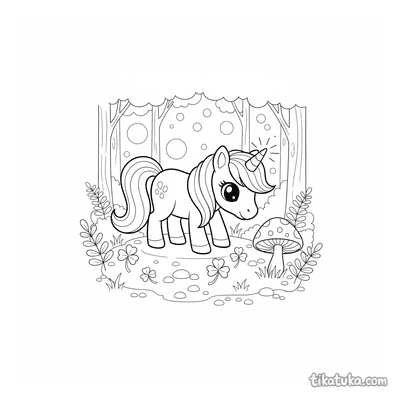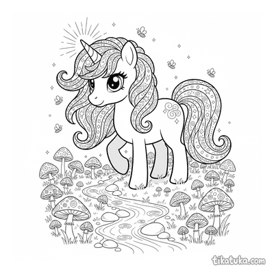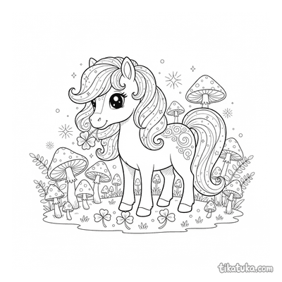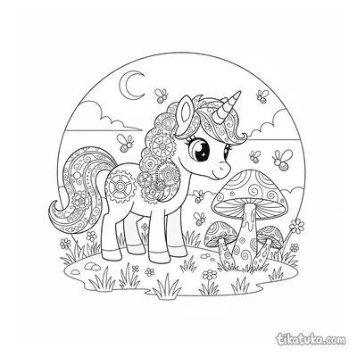 También hay diseños con crines de arcoíris y hasta con motivos de engranajes, situados en praderas de hongos brillantes y campos de trébol. Todas las ilustraciones están en blanco y negro, con líneas claras y definidas que son perfectas para que los niños coloreen. Puedes descargar e imprimir cualquiera de estos dibujos de forma gratuita, ya sea para una sola hoja o en lote para una actividad grupal, y también está la opción de colorearlos directamente online.