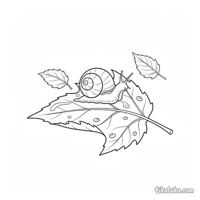 Caracol Pequeño en una Hoja de Arce Mojada por la Lluvia