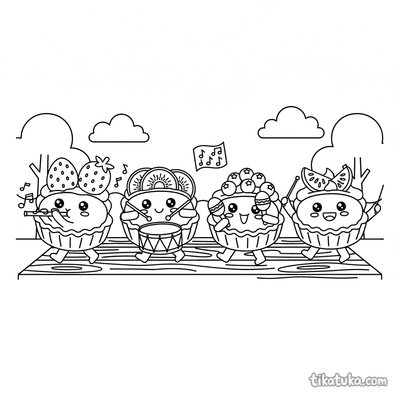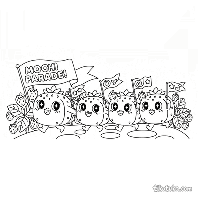 Esta colección de dibujos para colorear presenta escenas de marcha con un toque divertido y original. Los personajes y objetos cobran vida en procesiones llenas de carácter y movimiento. Cada página invita a los niños a dar color a estos desfiles inusuales.