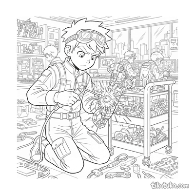 Estudiante Piloto de Mecha Reparando un Brazo Robot