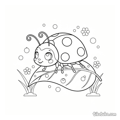 Mariquita en Hoja con Gotas de Rocío