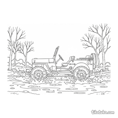 Encontrarás vehículos todoterreno como jeeps y monster trucks saltando sobre charcos, tanques cruzando campos lodosos y animales curiosos como llamas e hipopótamos disfrutando del barro. Cada dibujo captura la acción y la textura de este elemento de forma clara y divertida.