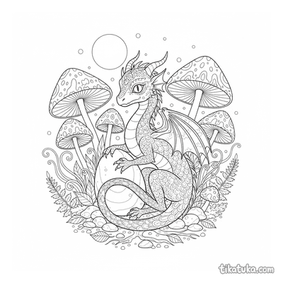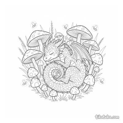 Dragón del Bosque Durmiendo en Anillo de Hongos