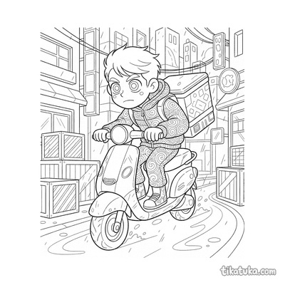 Repartidor Corriendo en Scooter Flotante por Ciudad Neón