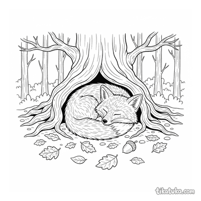 En esta colección encontrarás robles otoñales, ramas cargadas de bellotas y escenas donde el árbol sirve de hogar o refugio para animales del bosque. Ardillas listadas recolectando frutos, zorros descansando a su sombra y hasta el oso de Kolobok aparecen en estas ilustraciones en blanco y negro. Todas las páginas están listas para descargar e imprimir en casa, con líneas claras y definidas ideales para los niños. Puedes colorearlas directamente en la pantalla o imprimir varias copias para una tarde de creatividad.