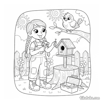 Niña Arreglando una Pajarera