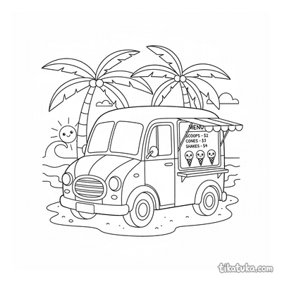 Camión de helados retro en la playa