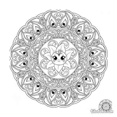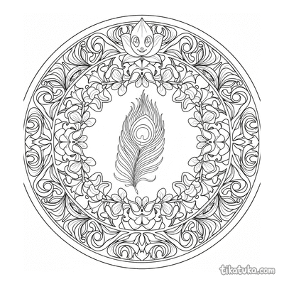 Mandala Floral Art Nouveau con Plumas de Pavo Real
