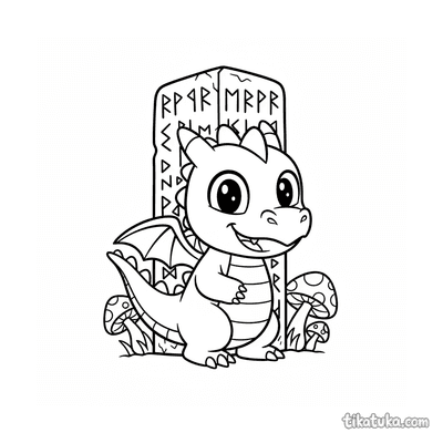 Dragoncito jugando al escondite tras piedra rúnica