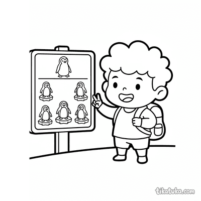 Niño Pequeño Señalando el Número 5 con Pingüinos en el Letrero del Zoológico