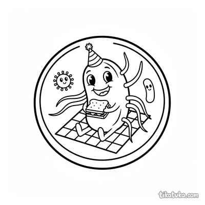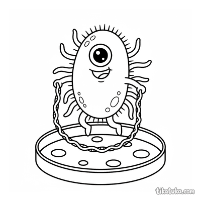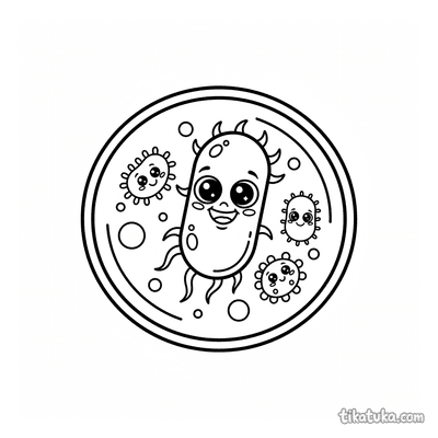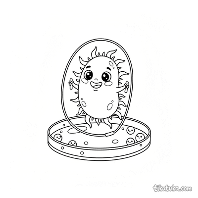 Explora nuestra colección de dibujos para colorear de placa de Petri. Estas páginas presentan el mundo microscópico de una forma divertida y accesible para los niños. Cada ilustración muestra una placa de Petri con sus habitantes bacterianos en situaciones curiosas.