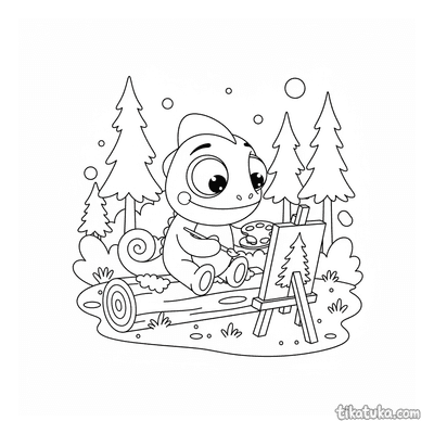 Camaleón Radik pintando en el bosque