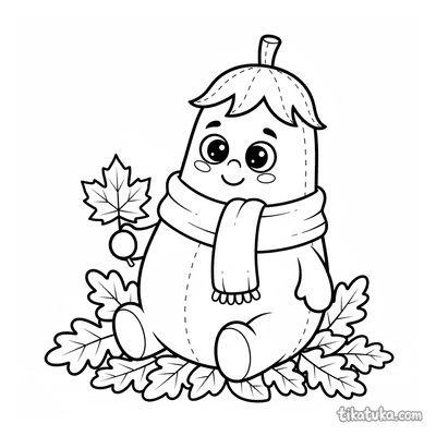 Berenjena Mascota de Peluche con Bufanda en Hojas de Otoño