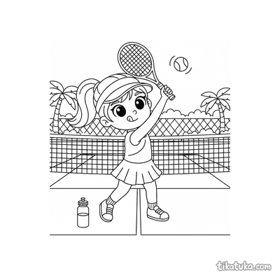 También hay tenistas en plena acción, niños pequeños aprendiendo a servir y niñas sujetando sus raquetas, ofreciendo una variedad de motivos para pintar. Todas las ilustraciones están en blanco y negro con líneas claras, listas para imprimir en casa o en la escuela. Puedes descargar las que más te gusten de forma gratuita y colorearlas directamente en el ordenador si lo prefieres.