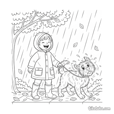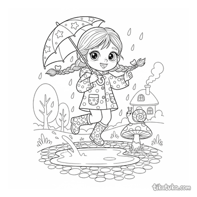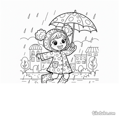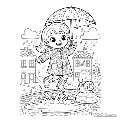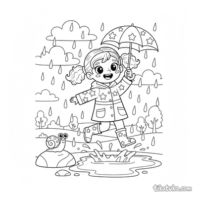Esta colección de dibujos para colorear captura escenas y personajes relacionados con la lluvia. Las ilustraciones presentan momentos divertidos y cotidianos bajo la lluvia.