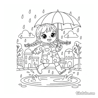 Esta colección de dibujos para colorear presenta el impermeable en diversas escenas. Los impermeables son la prenda protagonista en estas ilustraciones de actividades bajo la lluvia.