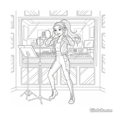 Cantante Idol Ensayando con Auriculares en el Estudio